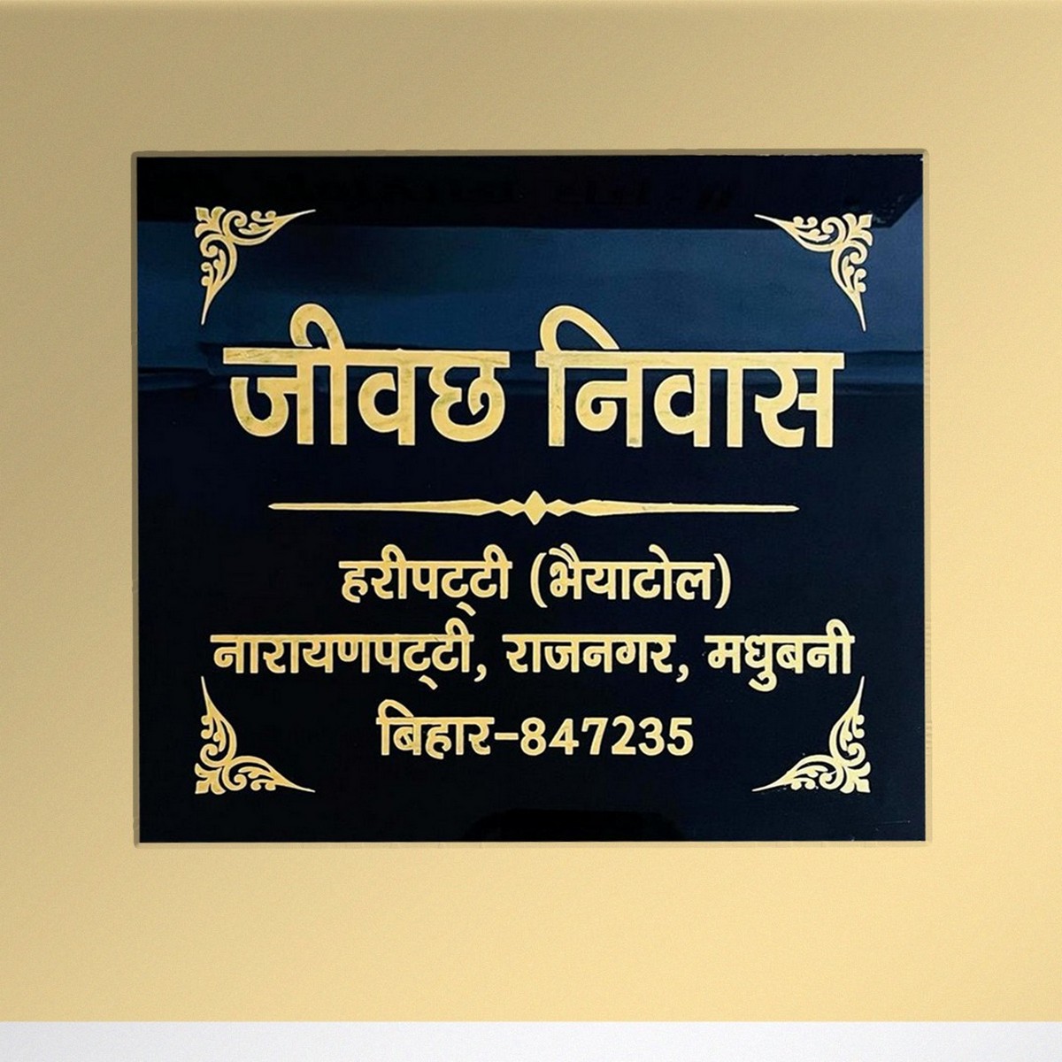 - Colour/Pattern: (Rectangular shape), Black granite used as base, Lazer engraved letters, highlighted with golden.