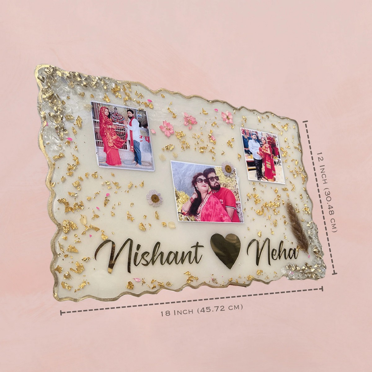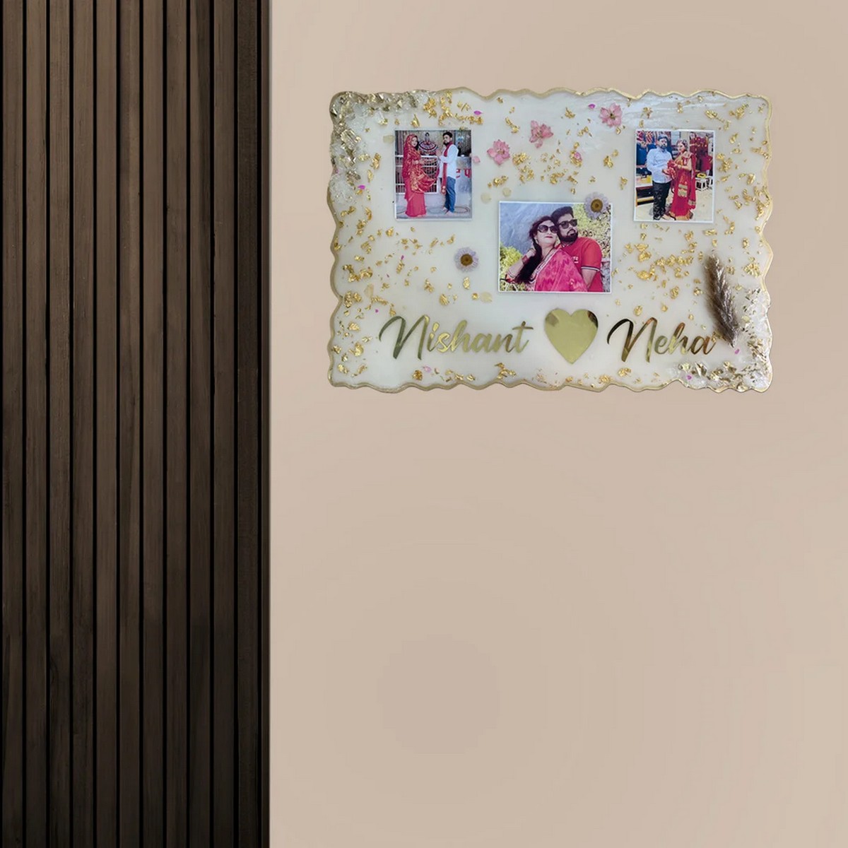 Couple Resin Art Photoframe Celebrating love in style! Check out this stunning pearl white resin art photo frame, perfect for capturing those unforgettable moments together.