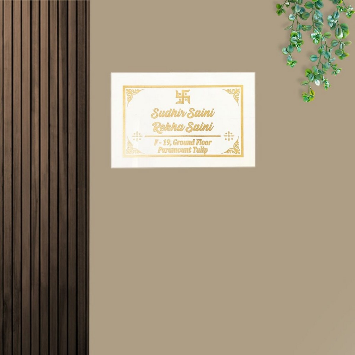 ✨🏡 Elevate your home’s vibe with this stunning white Marble Engraved House Name plate in a chic golden colour!
